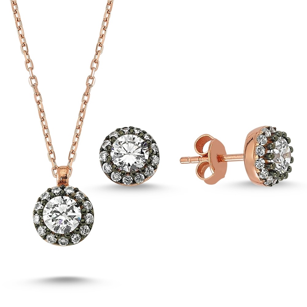 Elmas Montürlü Gümüş Kolye Küpe Miniset MY001002