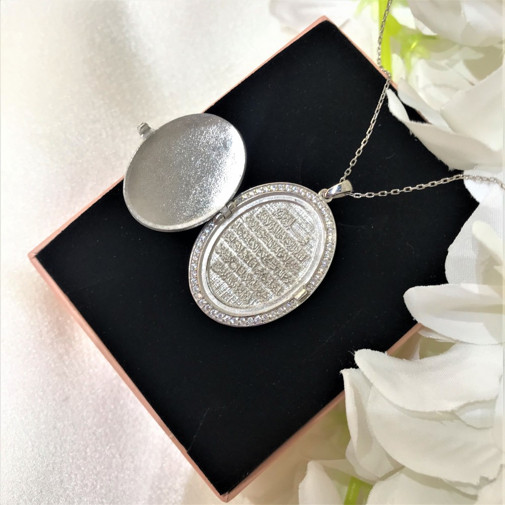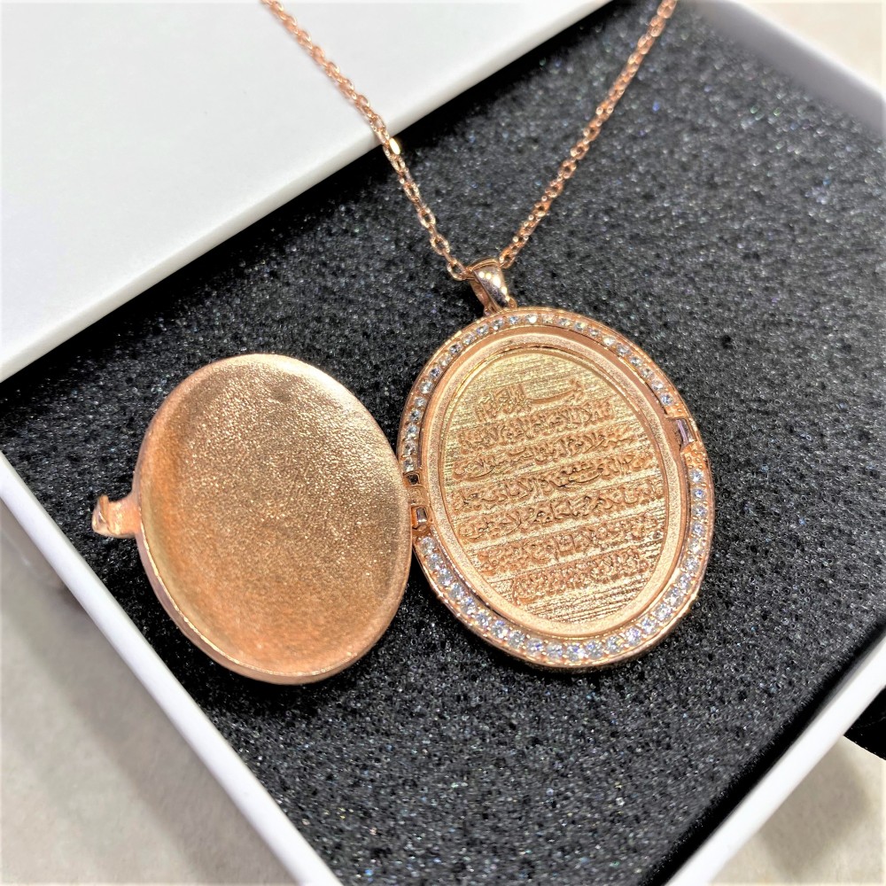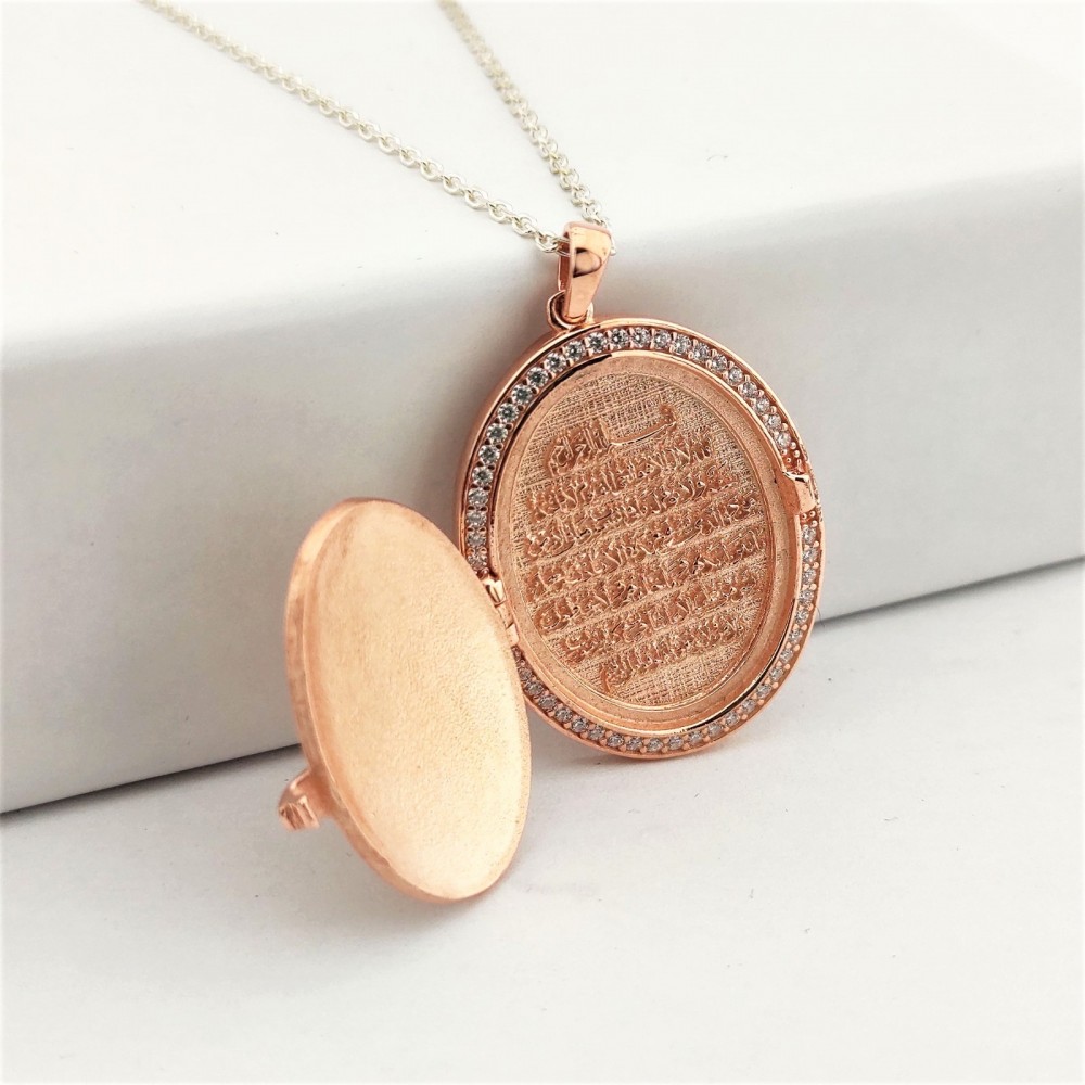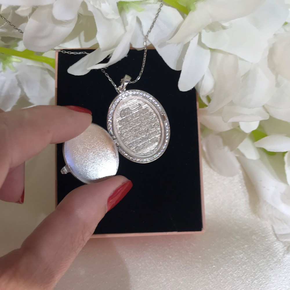 Zirkon Taşlı Kapaklı Ayet-el Kürsi Yazılı Gümüş Kolye MY102480