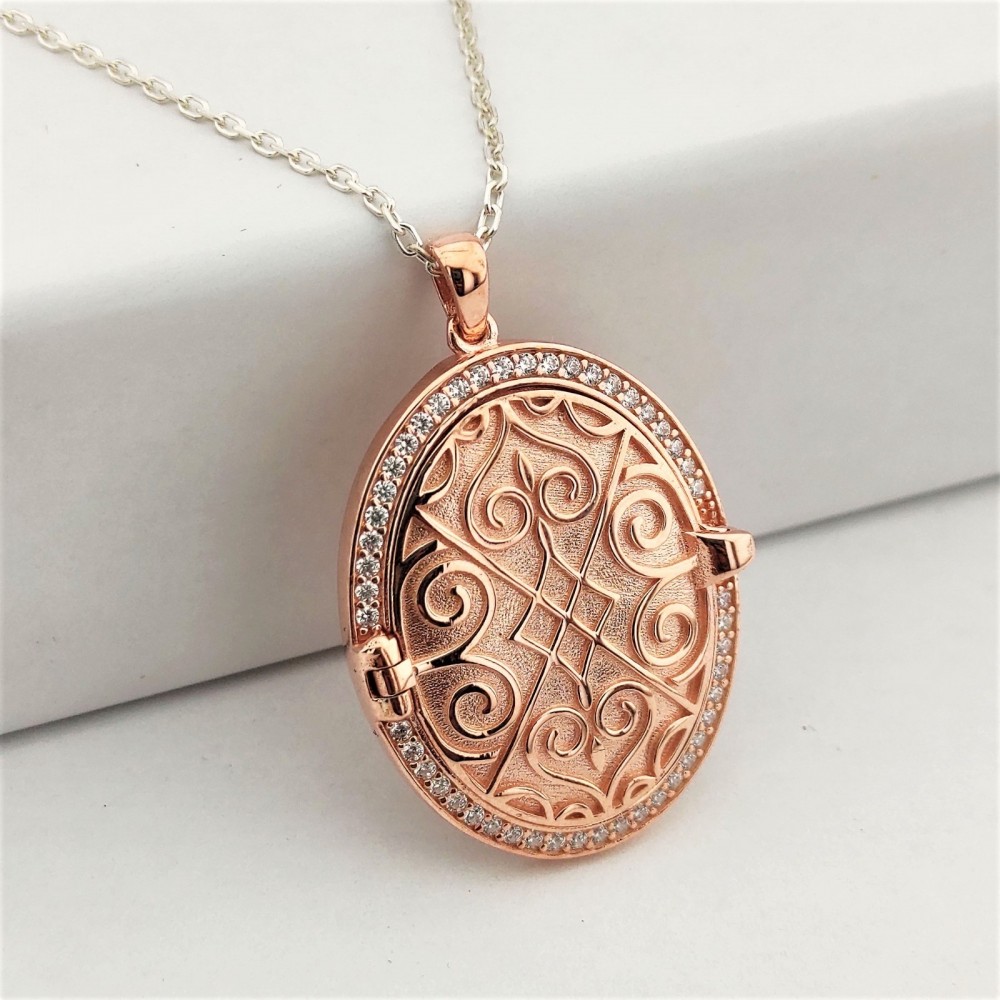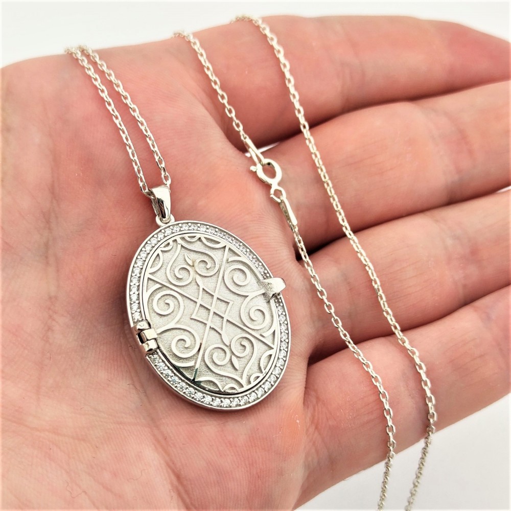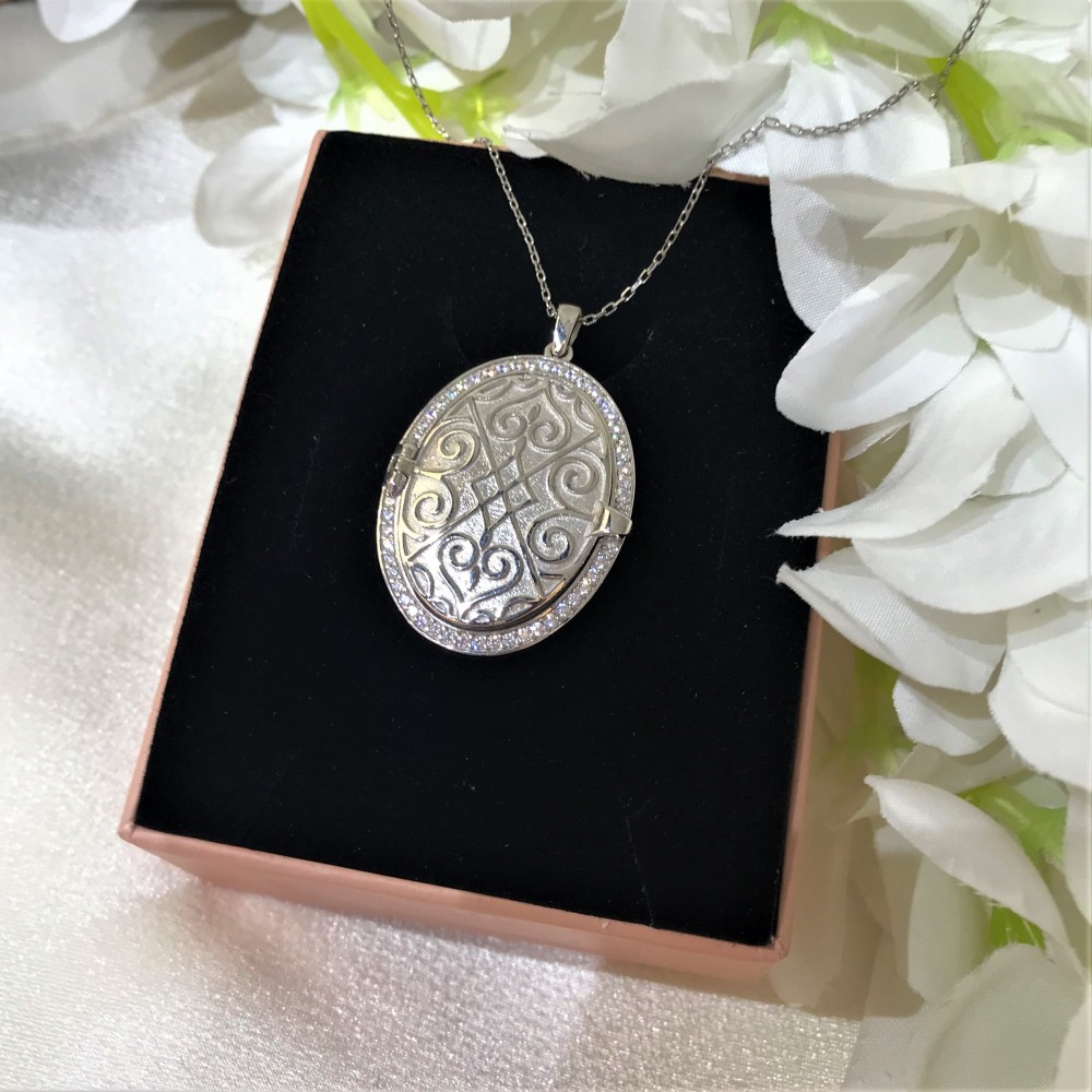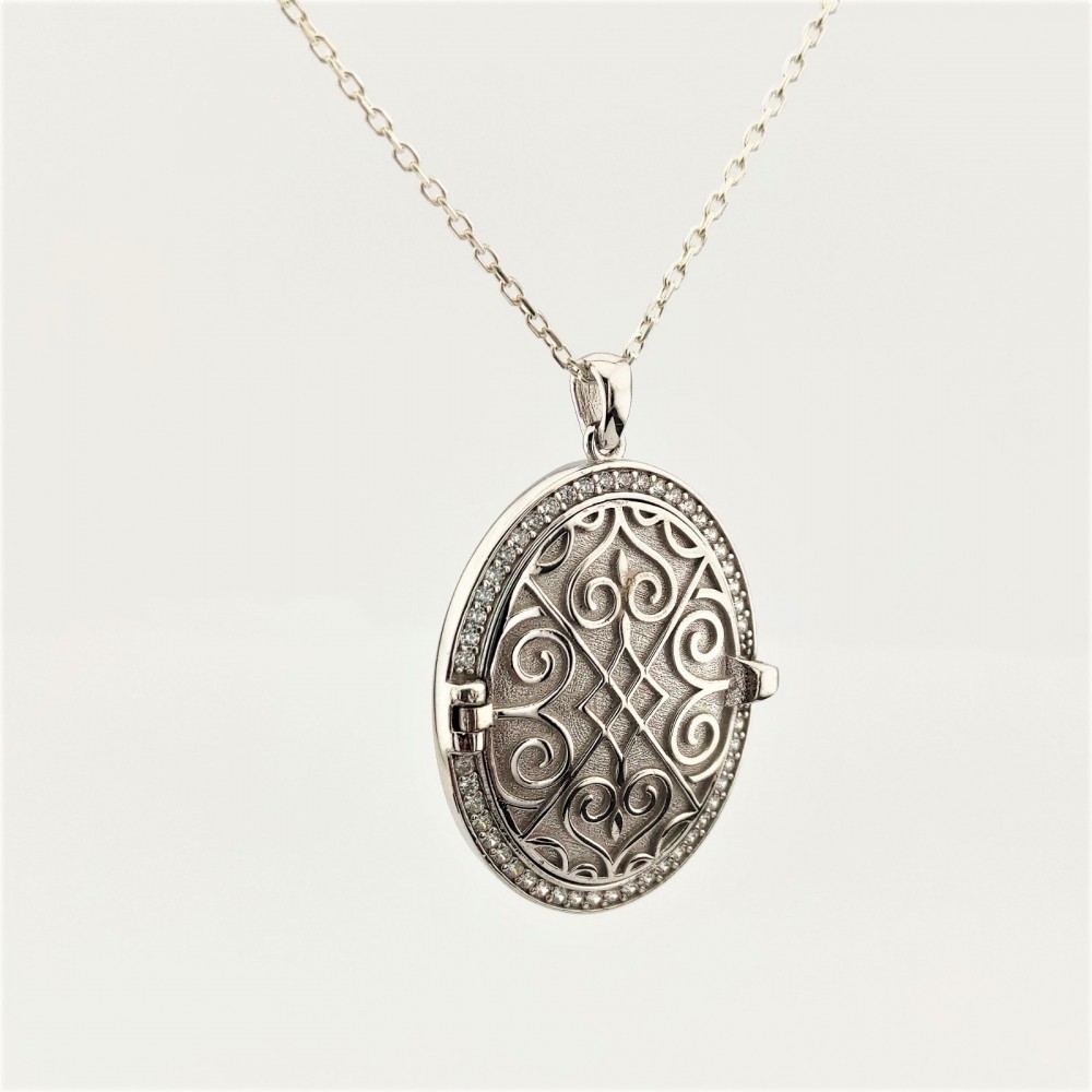 Zirkon Taşlı Kapaklı Ayet-el Kürsi Yazılı Gümüş Kolye MY102480