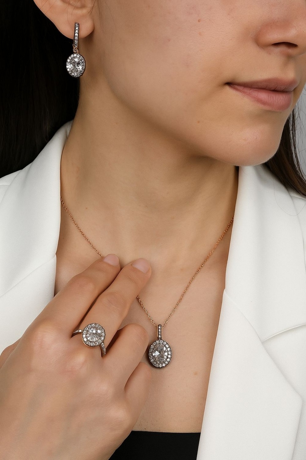 Zirkon Taşlı Elmas Üçlüset Kolye Küpe Yüzük MY102254